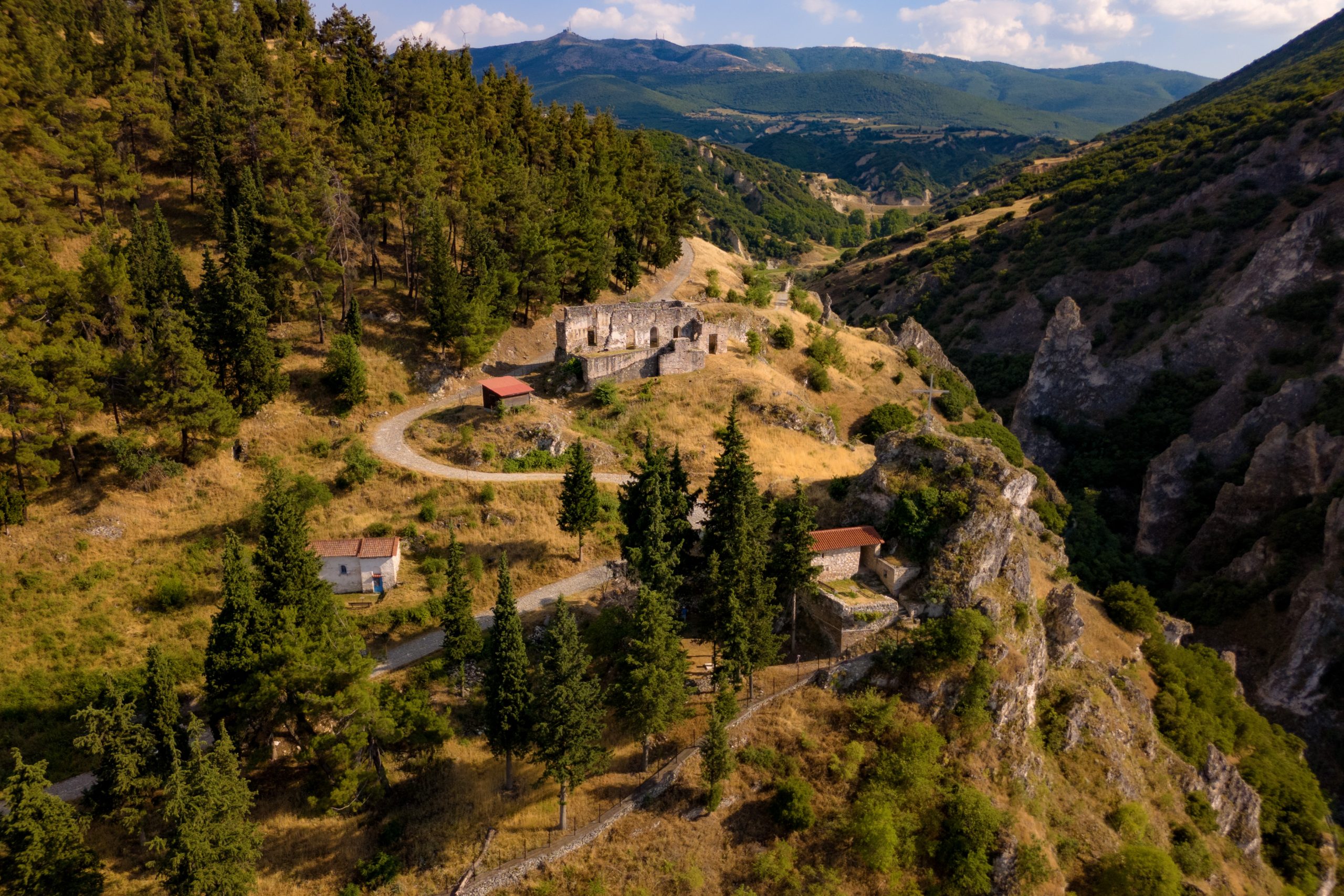 Η τρίκλιτη Βασιλική χτίστηκε επάνω σε ένα πλάτωμα που διαμορφώθηκε στον βράχο πολλούς αιώνες πριν την κατασκευή του ναού. Γύρω τον 4ο με 6ο αιώνα, ό χώρος φιλοξενούσε κάποιον προχριστιανικό ναό, σύμφωνα με τα ευρήματα.