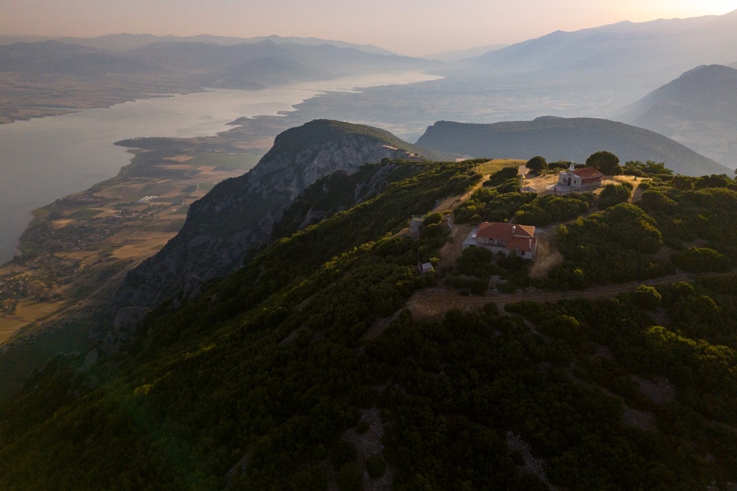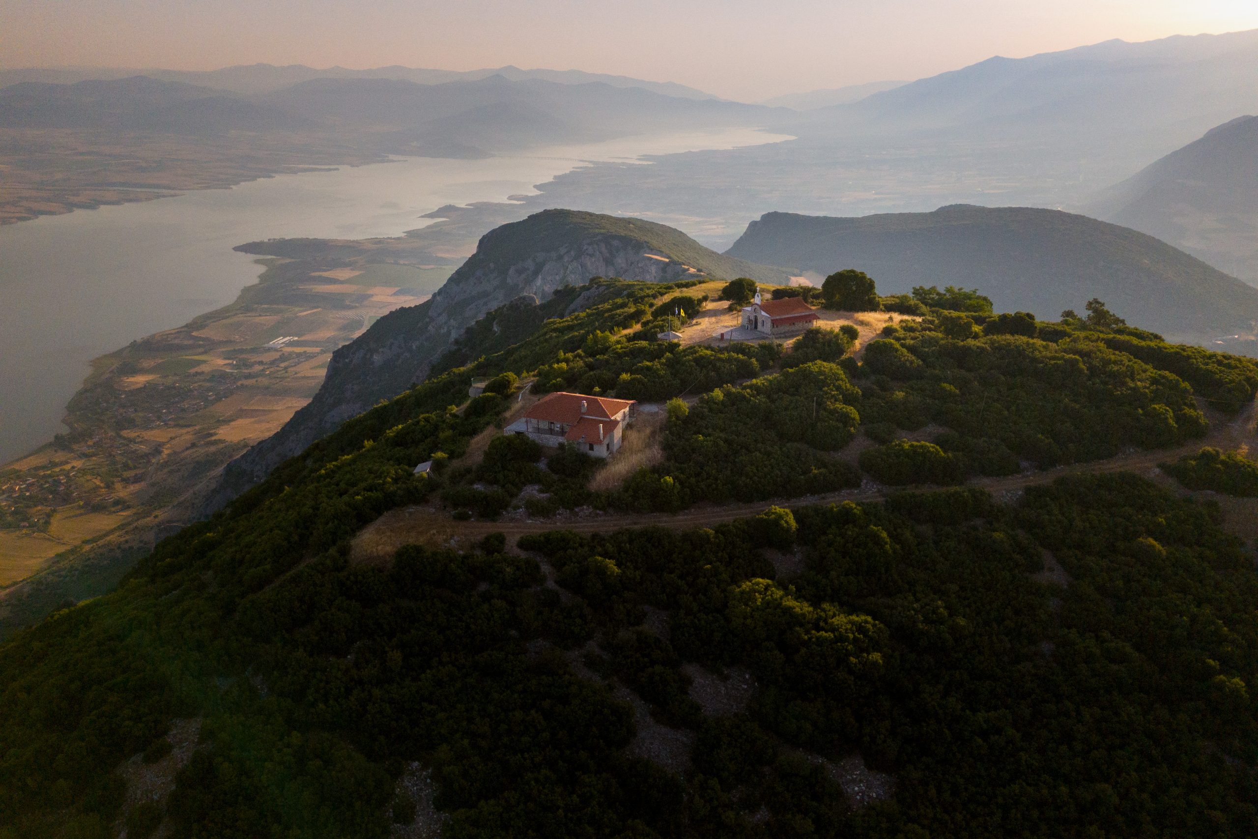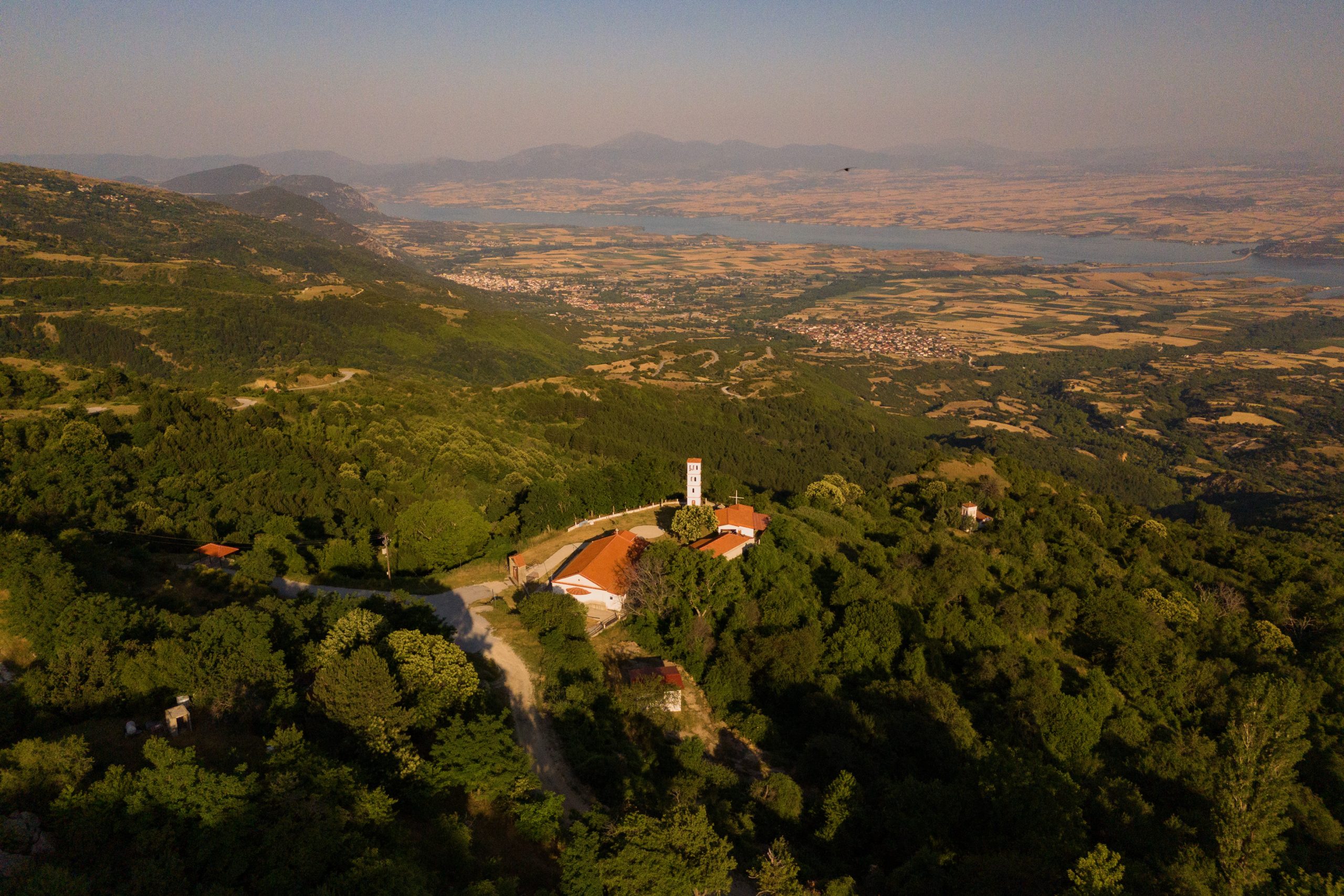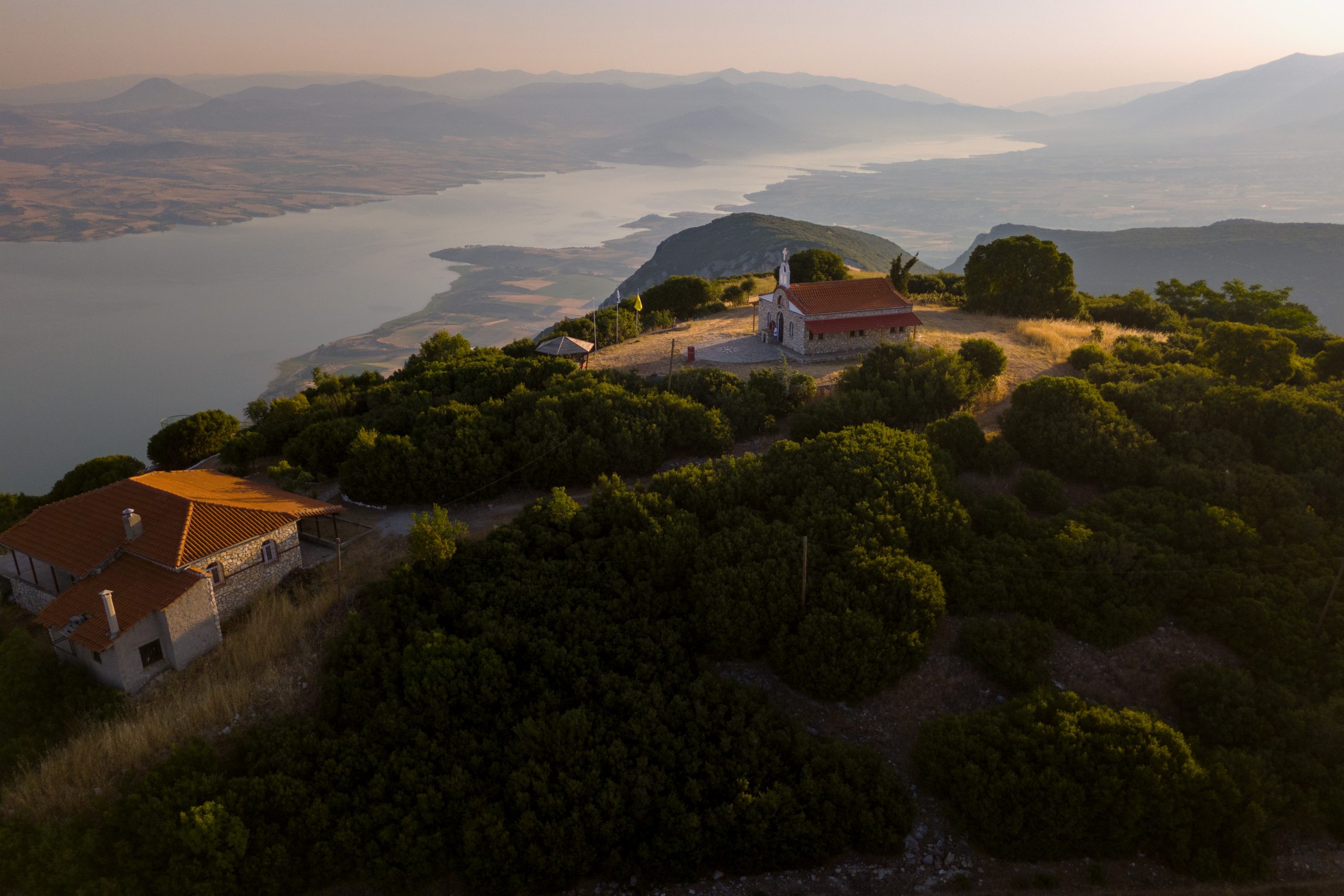 Η θέα είναι εντυπωσιακή, καθώς προσφέρει πανοραμική άποψη του μεγαλύτερου τμήματος της Λίμνης Πολυφύτου.